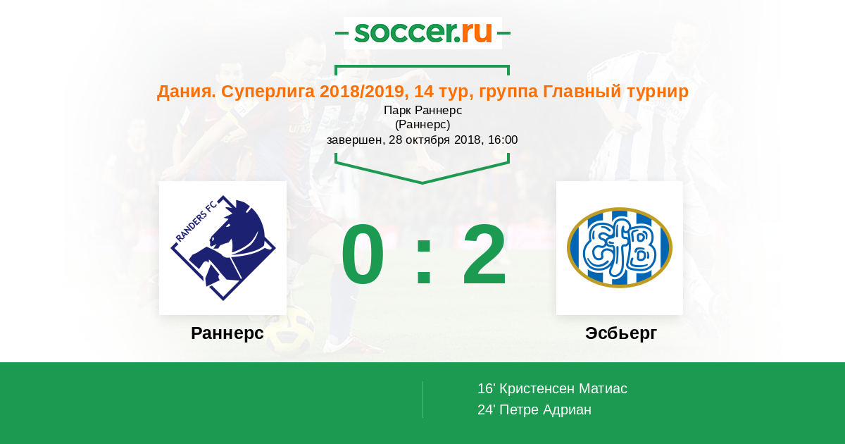 Раннерс - Эсбьерг: обзор матча 28 октября 2018