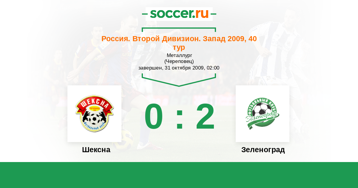 Шексна - Зеленоград: обзор матча 31 октября 2009