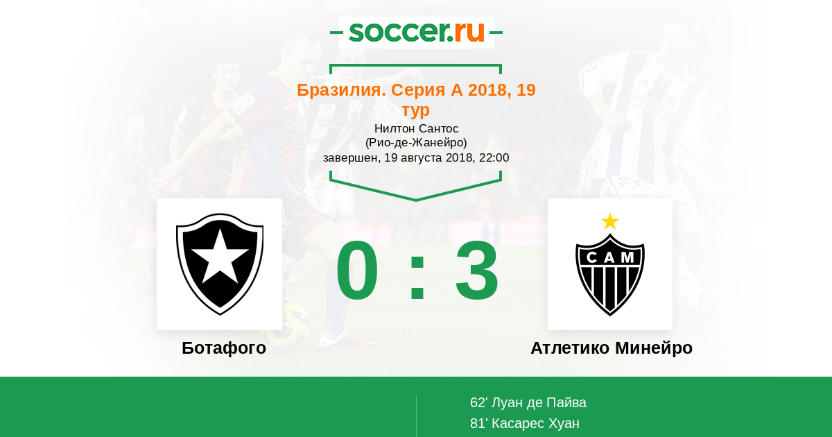 Ботафого - Атлетико Минейро: обзор матча 19 августа 2018