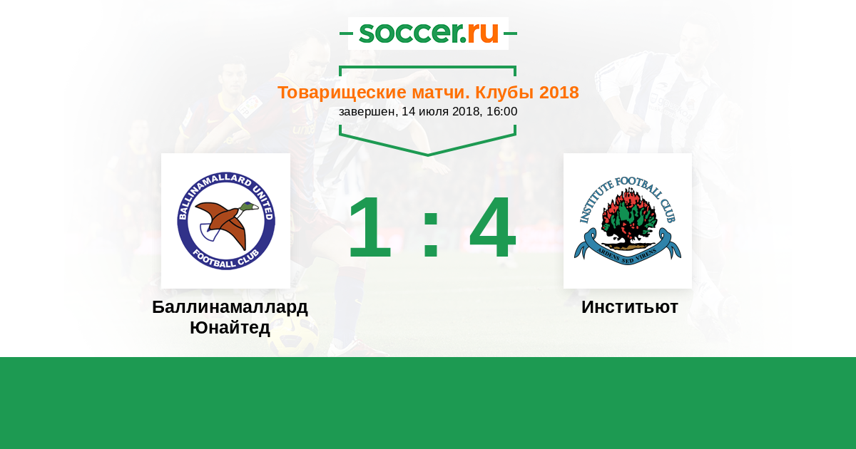 Баллинамаллард Юнайтед - Инститьют: обзор матча 14 июля 2018