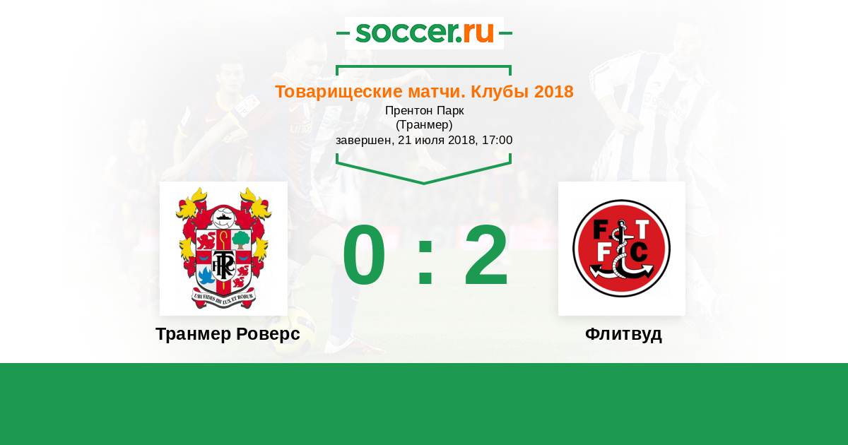 Транмер Роверс - Флитвуд: обзор матча 21 июля 2018