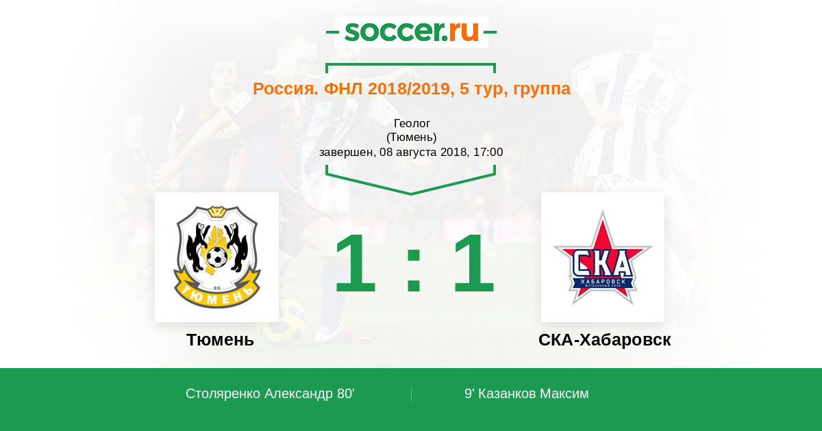 Тюмень - СКА-Хабаровск: обзор матча 8 августа 2018