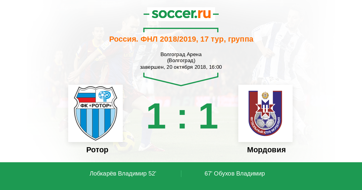 Ротор - Мордовия: обзор матча 20 октября 2018