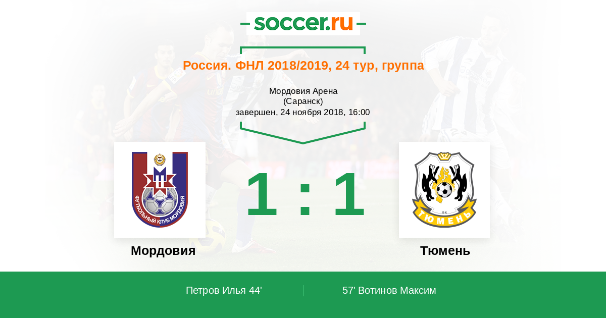 Мордовия - Тюмень: обзор матча 24 ноября 2018