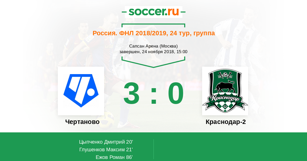 Чертаново - Краснодар-2: обзор матча 24 ноября 2018
