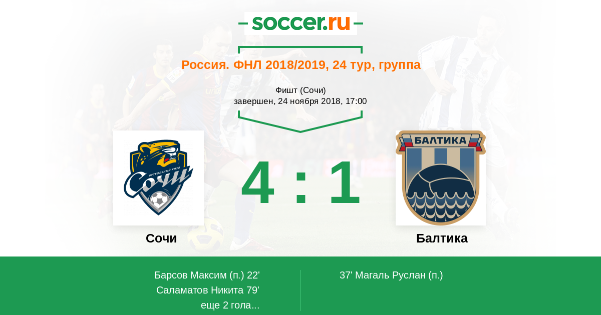 Сочи - Балтика: обзор матча 24 ноября 2018