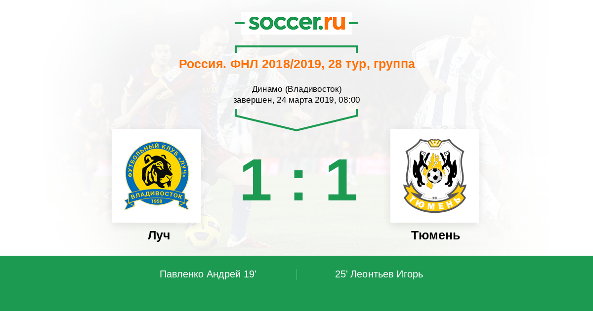 Луч - Тюмень: обзор матча 24 марта 2019