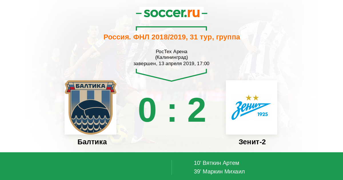Балтика - Зенит-2: обзор матча 13 апреля 2019