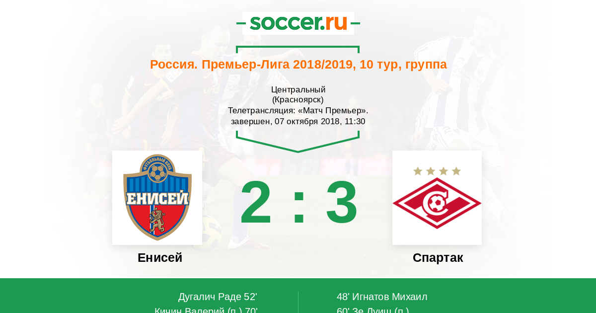 Красноярск, Центральный, зрителей: 14915 Телетрансляция: "Матч Премьер".