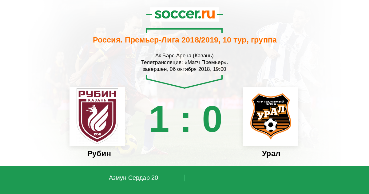 Добрый вечер, уважаемые поклонники российского футбола! В одном из матчей 10-го тура РПЛ "Рубин" будет принимать "Урал". "Шмели" побеждают уже три матча подряд и явно настраиваются на успех в поединке с "Рубином". Как в итоге закончится матч? Сайт https://www.soccer.ru проведёт прямую текстовую онлайн трансляцию матча, следить за событиями на поле и комментировать игру для вас будет Старчеус Сергей.
