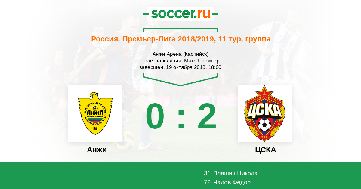 Доброго времени суток, уважаемые любители футбола! Рады приветствовать Вас на текстовой онлайн-трансляции матча одиннадцатого тура РПЛ, в котором "Анжи" сыграет с ЦСКА. Встреча пройдет в Каспийске на стадионе "Анжи-Арена". Обслужит матч бригада арбитров во главе с Василием Казарцевым.