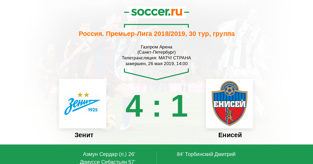 Зенит - Енисей: обзор матча 26 мая 2019