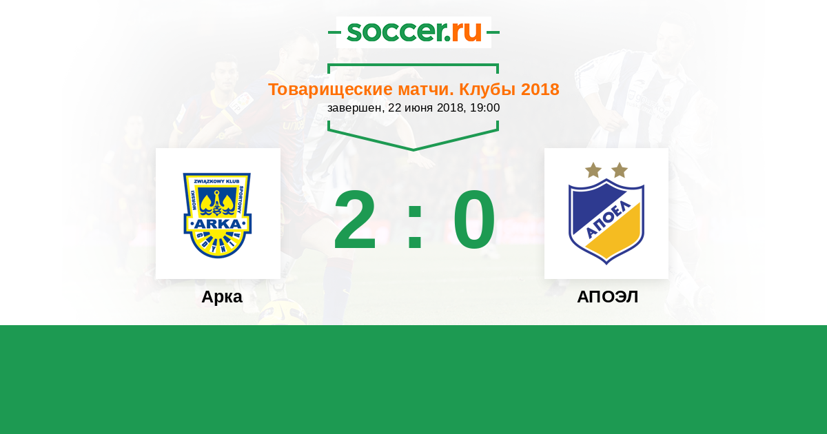 Арка - АПОЭЛ: обзор матча 22 июня 2018