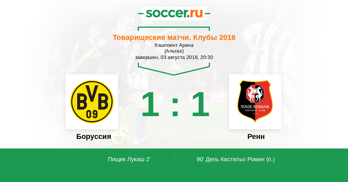 Боруссия - Ренн: обзор матча 3 августа 2018