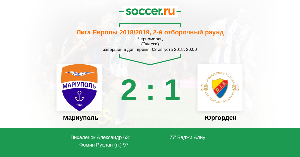 Мариуполь - Юргорден: обзор матча 2 августа 2018