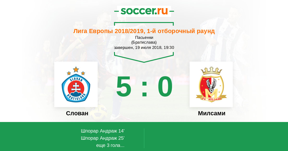 Слован - Милсами: обзор матча 19 июля 2018