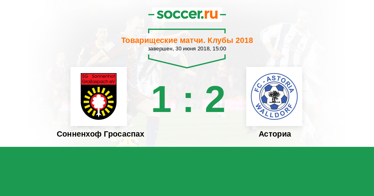 Сонненхоф Гросаспах - Асториа: обзор матча 30 июня 2018