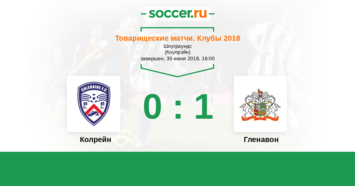 Колрейн - Гленавон: обзор матча 30 июня 2018