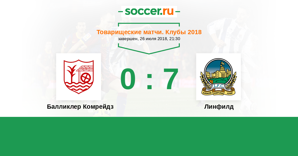 Балликлер Комрейдз - Линфилд: обзор матча 26 июля 2018