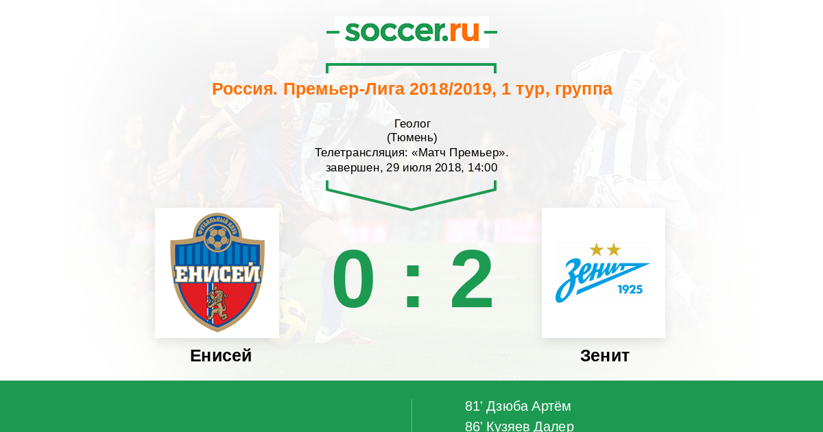 Все! 0:2! Побеждаем в первом туре благодаря голам Дзюбы и Кузяева! С победой, сине-бело-голубые! #ЕнисейЗенит