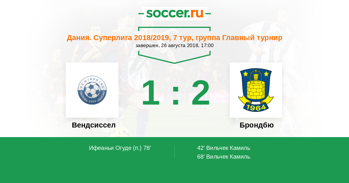 Вендсиссел - Брондбю: обзор матча 26 августа 2018