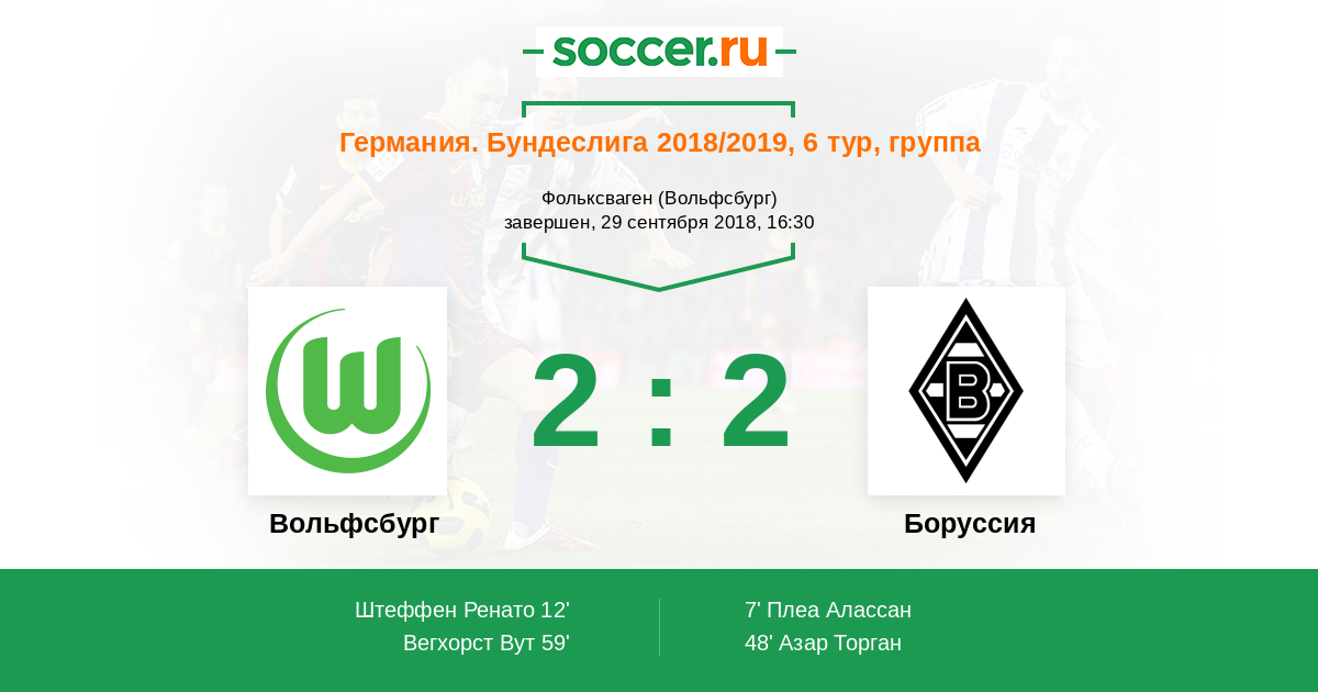 Вольфсбург - Боруссия: обзор матча 29 сентября 2018