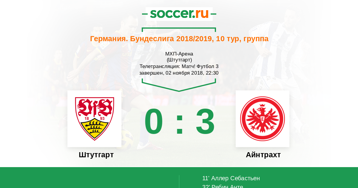 Штутгарт - Айнтрахт: обзор матча 2 ноября 2018