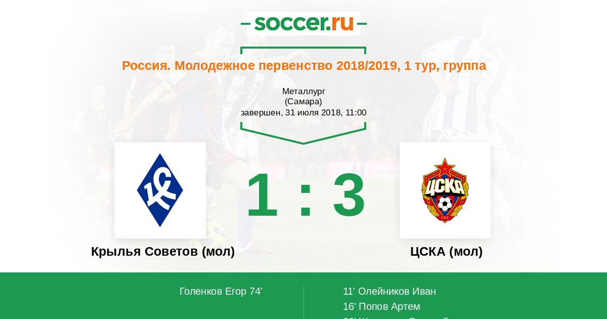 Крылья Советов (мол) - ЦСКА (мол): обзор матча 31 июля 2018