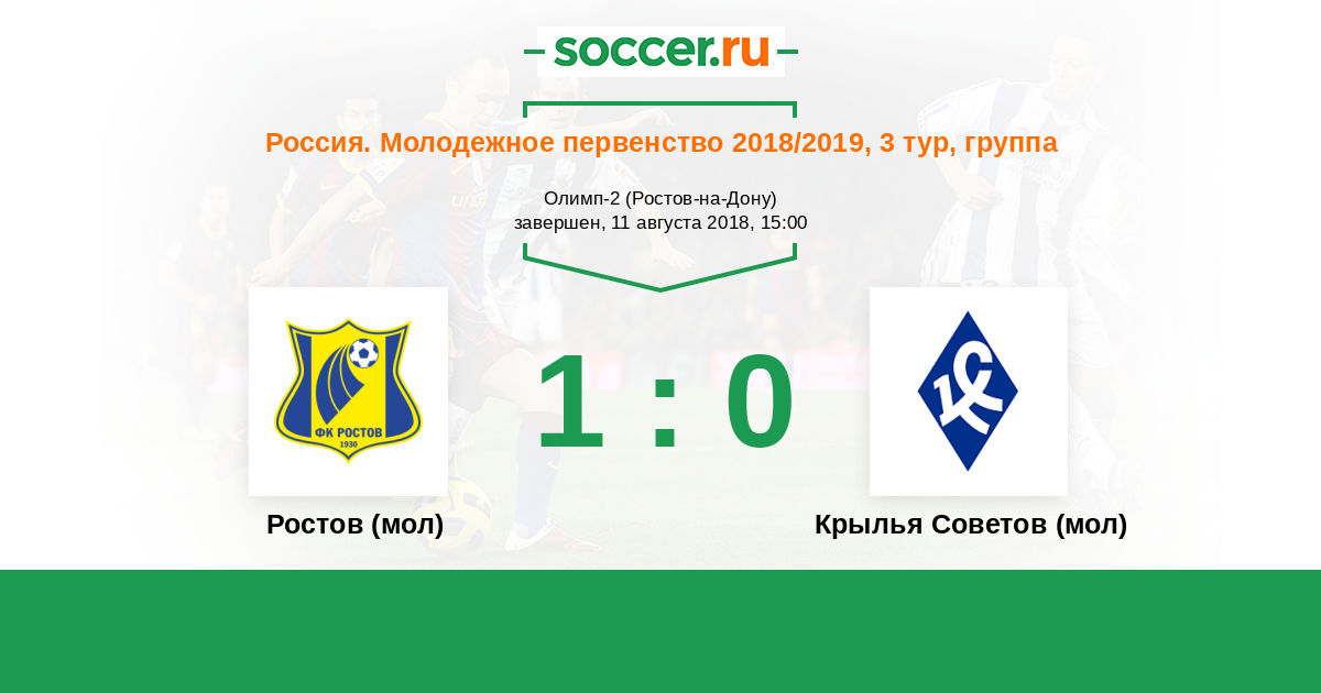 Ростов (мол) - Крылья Советов (мол): обзор матча 11 августа 2018