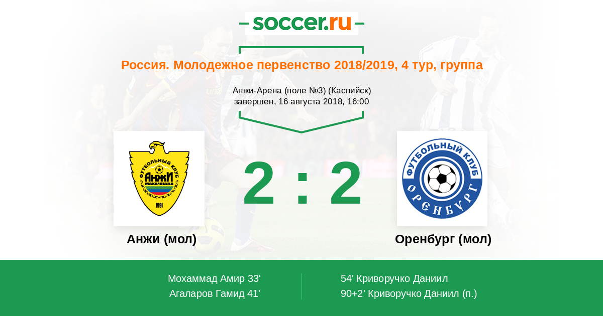 Анжи (мол) - Оренбург (мол): обзор матча 16 августа 2018
