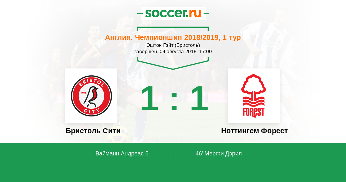 Бристоль Сити - Ноттингем Форест: обзор матча 4 августа 2018