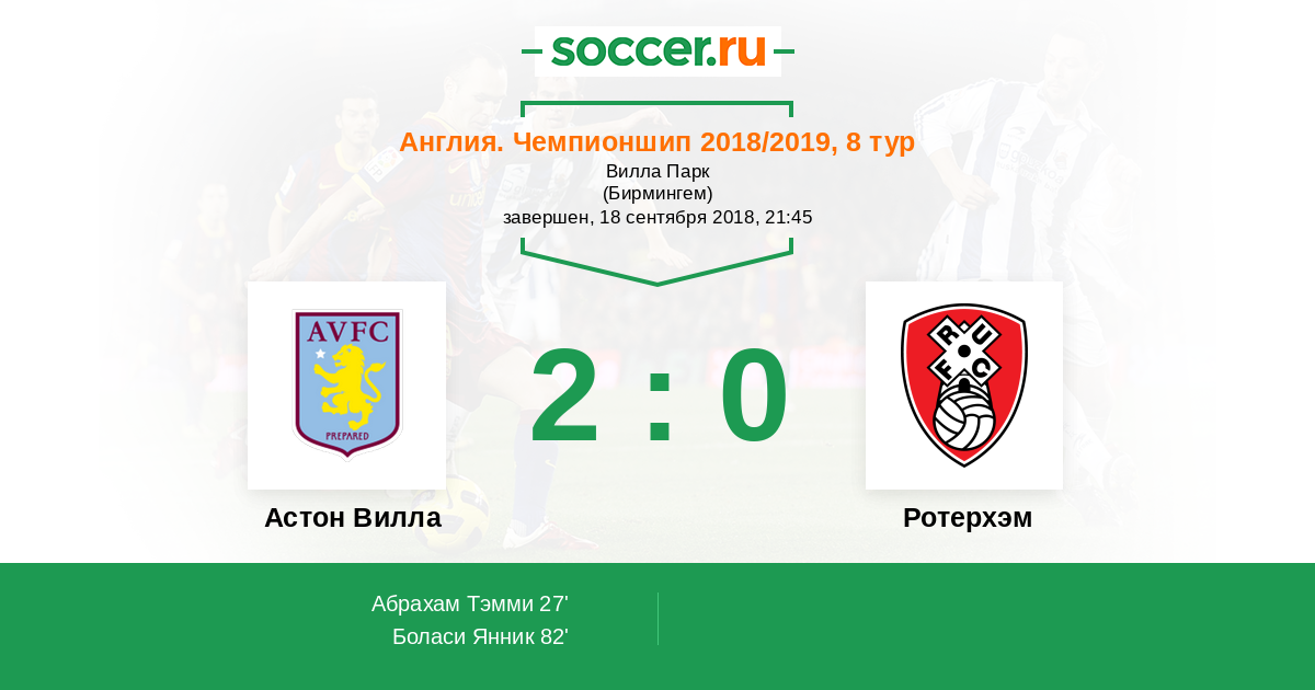 Астон Вилла - Ротерхэм: обзор матча 18 сентября 2018