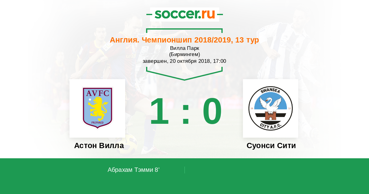 Астон Вилла - Суонси Сити: обзор матча 20 октября 2018
