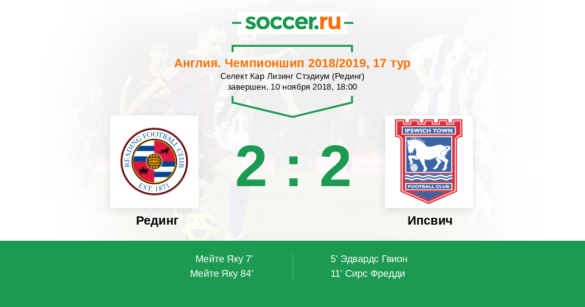 Рединг - Ипсвич: обзор матча 10 ноября 2018