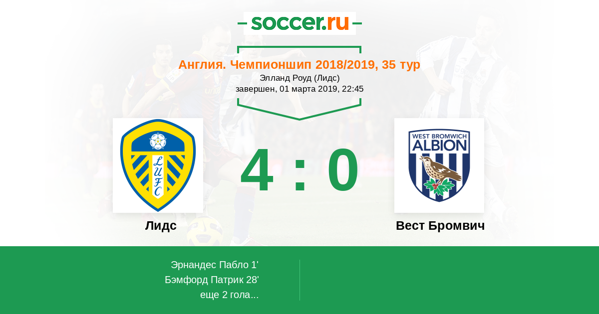 Лидс - Вест Бромвич: обзор матча 1 марта 2019