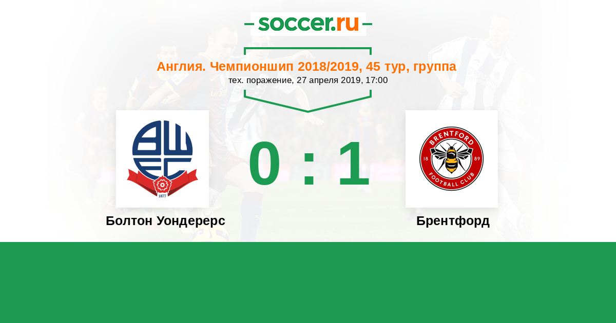 Болтон Уондерерс - Брентфорд: обзор матча 27 апреля 2019