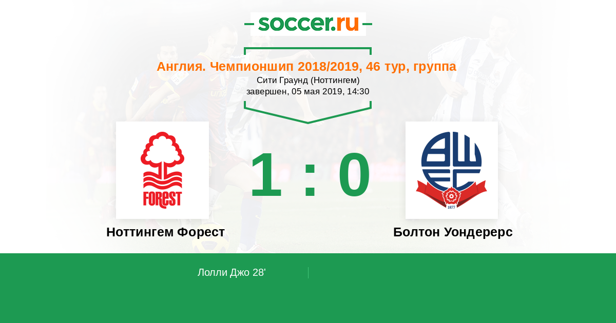 Ноттингем Форест - Болтон Уондерерс: обзор матча 5 мая 2019