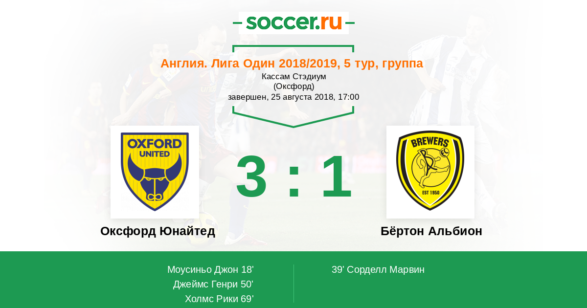 Оксфорд Юнайтед - Бёртон Альбион: обзор матча 25 августа 2018