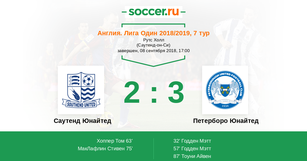 Саутенд Юнайтед - Петерборо Юнайтед: обзор матча 8 сентября 2018