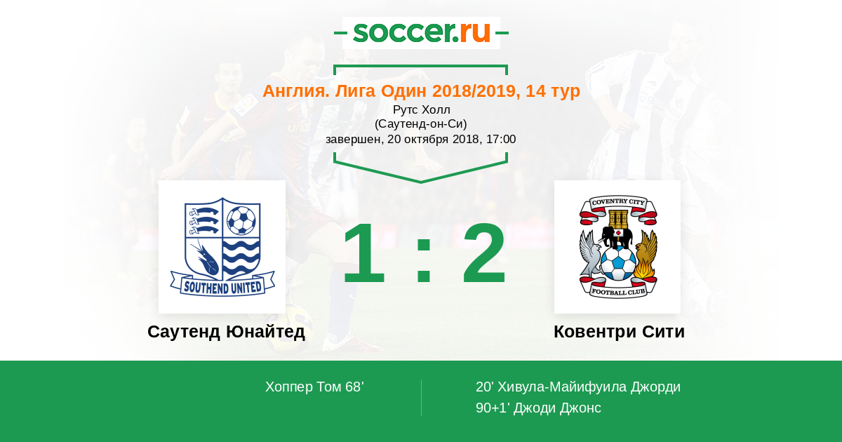 Саутенд Юнайтед - Ковентри Сити: обзор матча 20 октября 2018