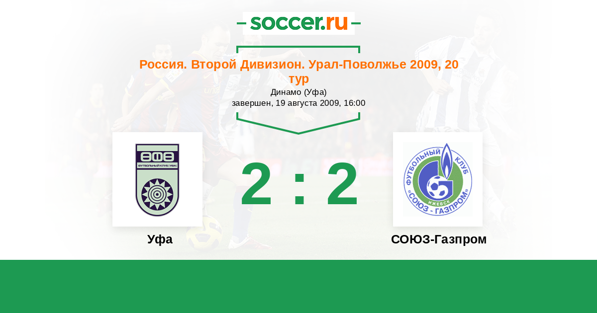Уфа - СОЮЗ-Газпром: обзор матча 19 августа 2009