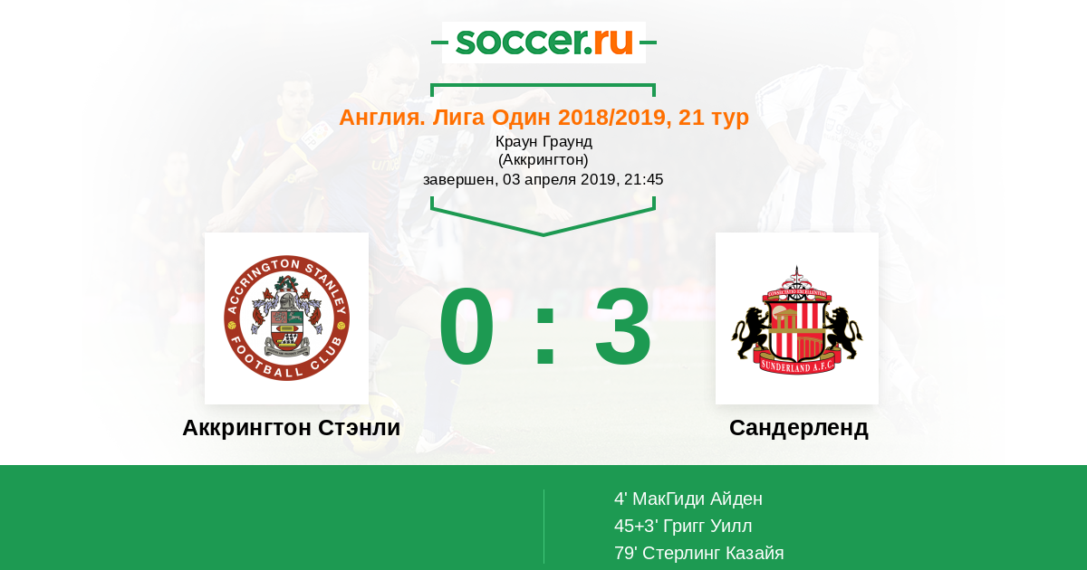 Аккрингтон Стэнли - Сандерленд: обзор матча 3 апреля 2019