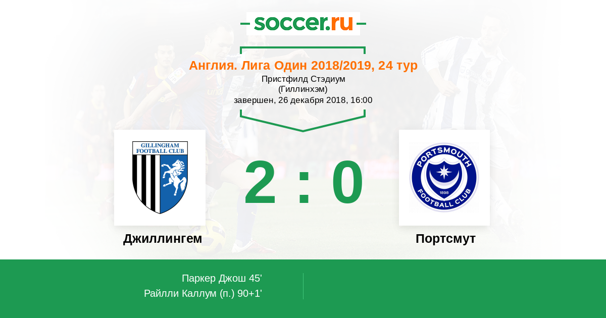 Джиллингем - Портсмут: обзор матча 26 декабря 2018