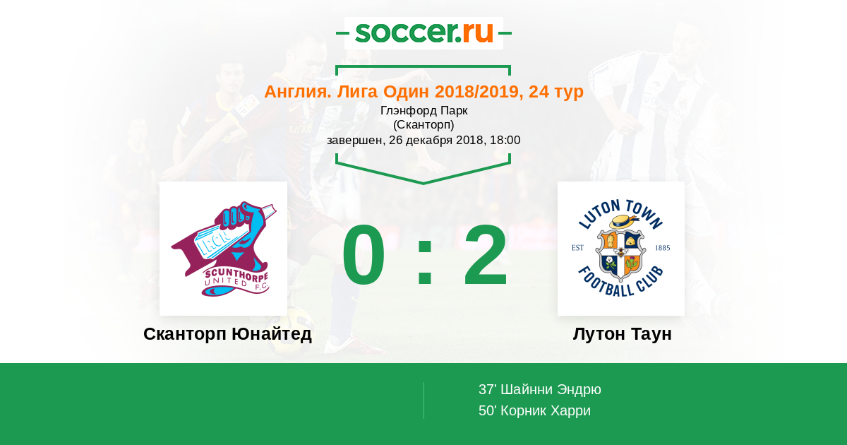 Сканторп Юнайтед - Лутон Таун: обзор матча 26 декабря 2018