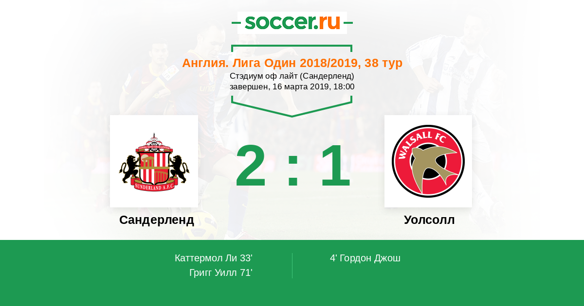 Сандерленд - Уолсолл: обзор матча 16 марта 2019