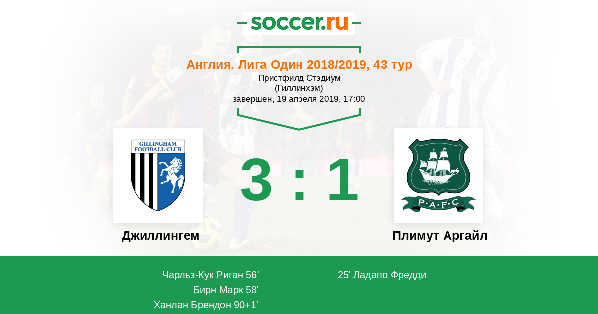 Джиллингем - Плимут Аргайл: обзор матча 19 апреля 2019
