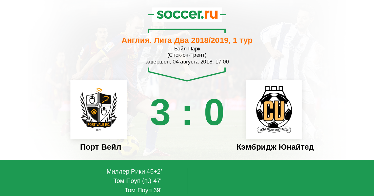 Порт Вейл - Кэмбридж Юнайтед: обзор матча 4 августа 2018