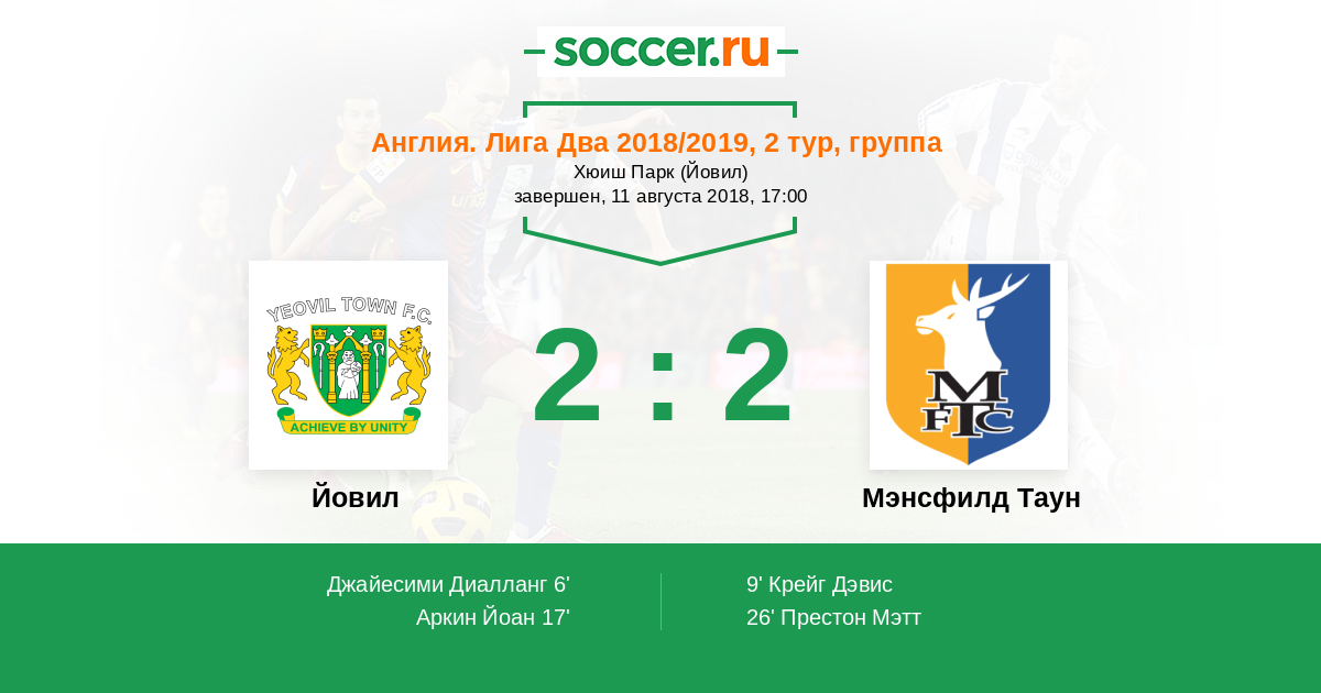 Йовил - Мэнсфилд Таун: обзор матча 11 августа 2018