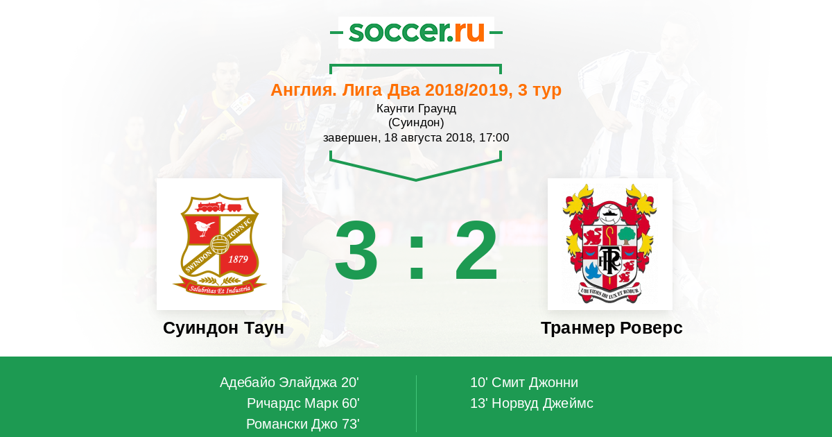 Суиндон Таун - Транмер Роверс: обзор матча 18 августа 2018