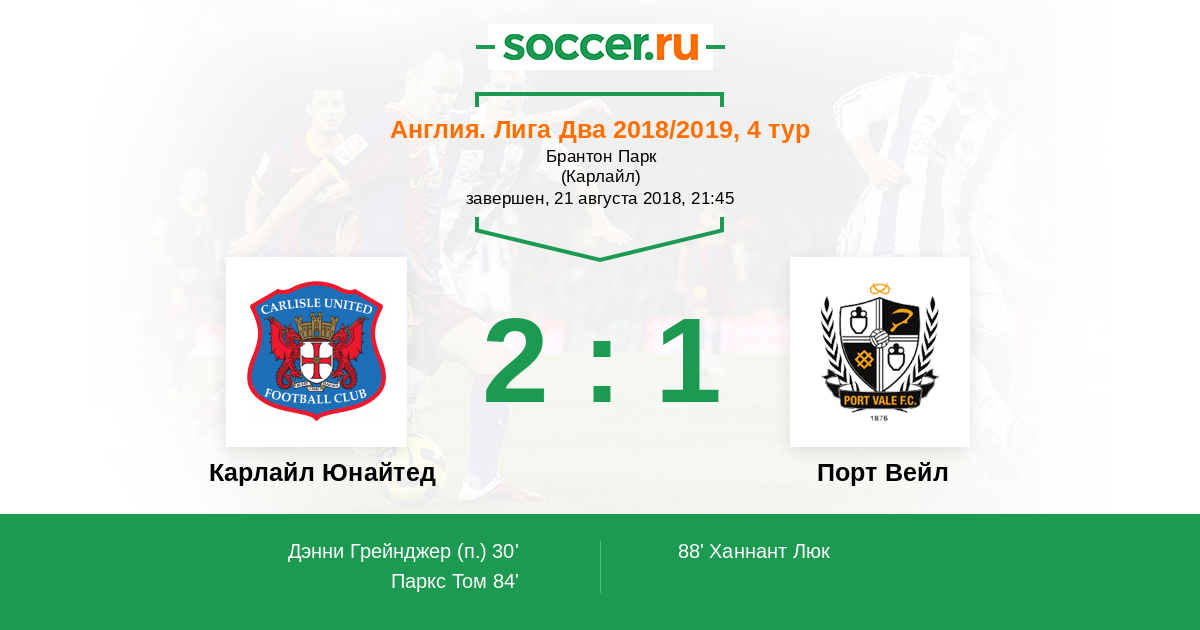 Карлайл Юнайтед - Порт Вейл: обзор матча 21 августа 2018